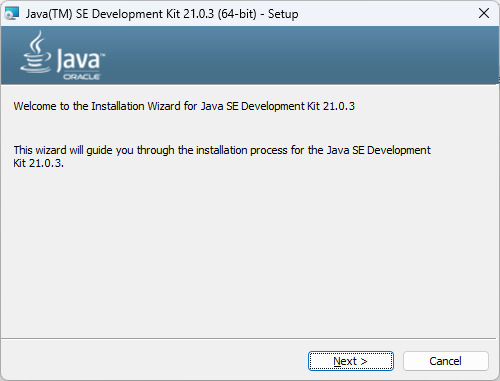 点击上面连接下载 JAVA JDK-21 安装包后双击安装它。一路点击 Next 即可,安装完成后点击 Close JAVA环境就安装完成了