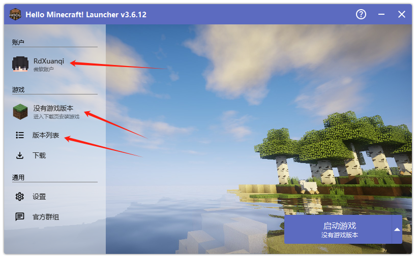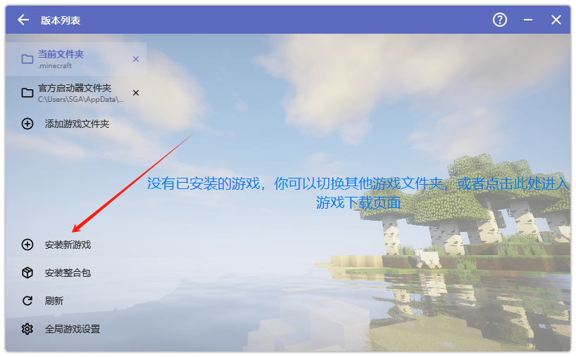 接下来需要你在版本列表中下载并安安装一个我的世界版本,才能开始游玩我的世界。