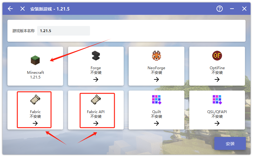 但是为了后面可以安装各种各样的模组(Mod)已经各种好看的 光影材质包 喜欢折腾的小伙伴可以吧下面框出的 Fabric 和 Fabric API 给安装上,为以后安装模组和光影以及材质包提供支持。选择最新版本即可。