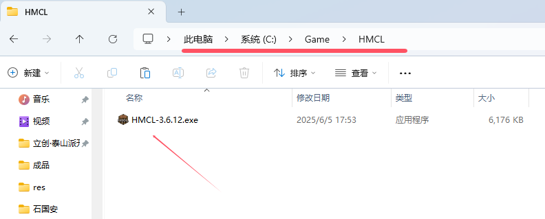 我这里将其放在 C:/Game/HMCL 目录下。