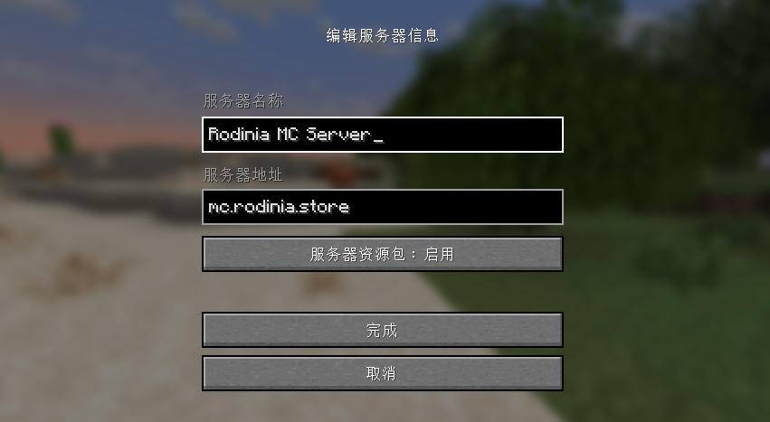 请在多人游戏栏目中按如下方式填写服务器信息,即可登录服务器。